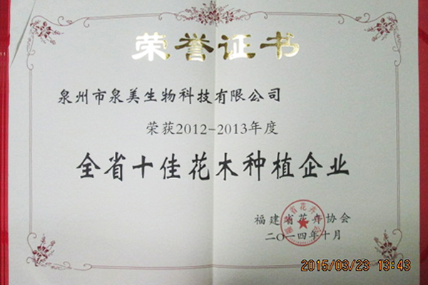 全省十佳花卉種植企業(yè)