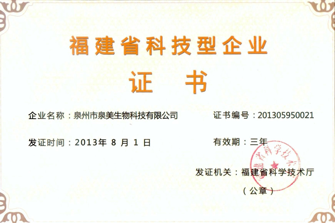 福建省科技型企業(yè)證書